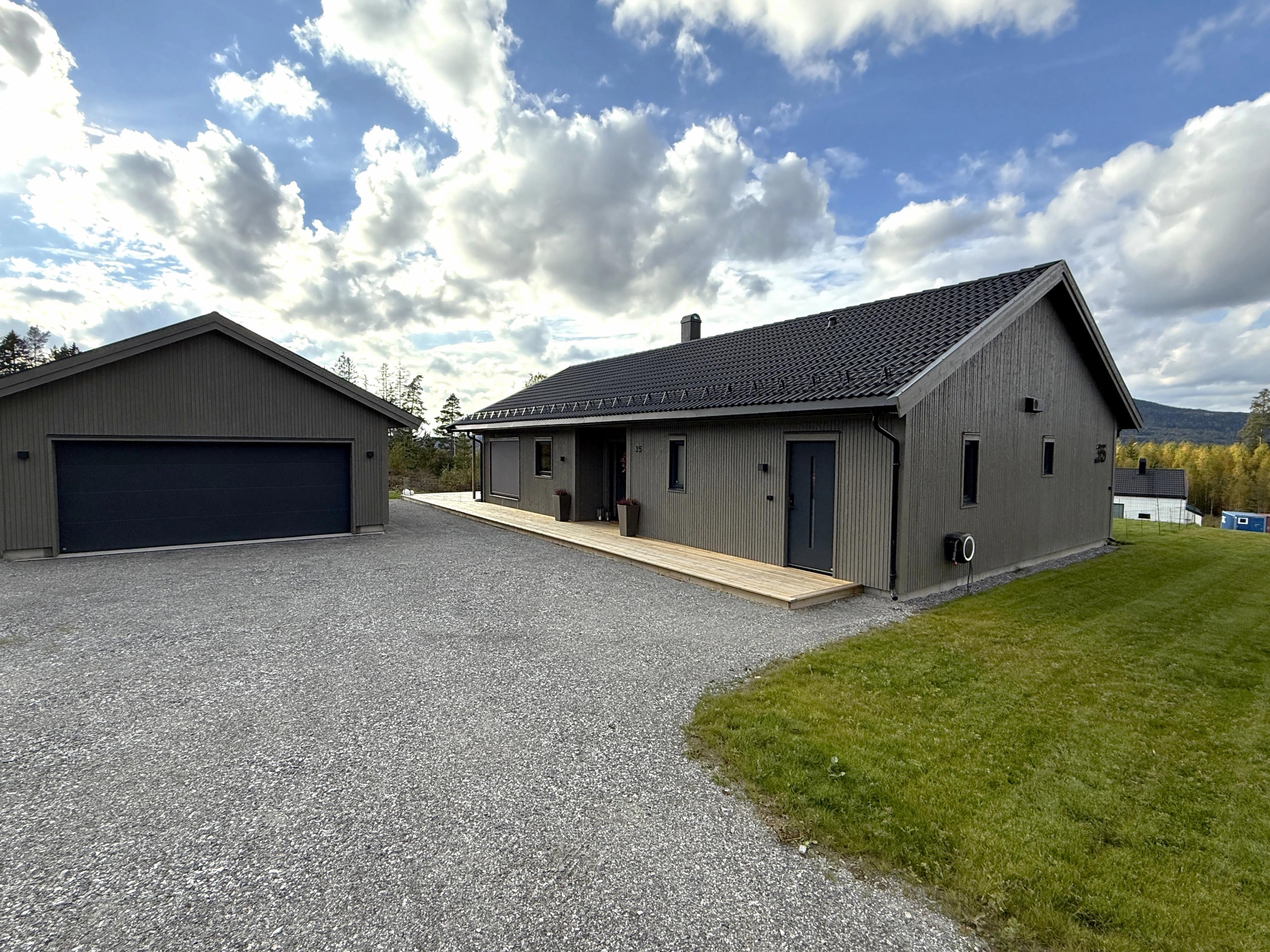 Denne moderne funkisboligen i Vollen er et perfekt eksempel på hvordan funksjonalitet og stil kan forenes.