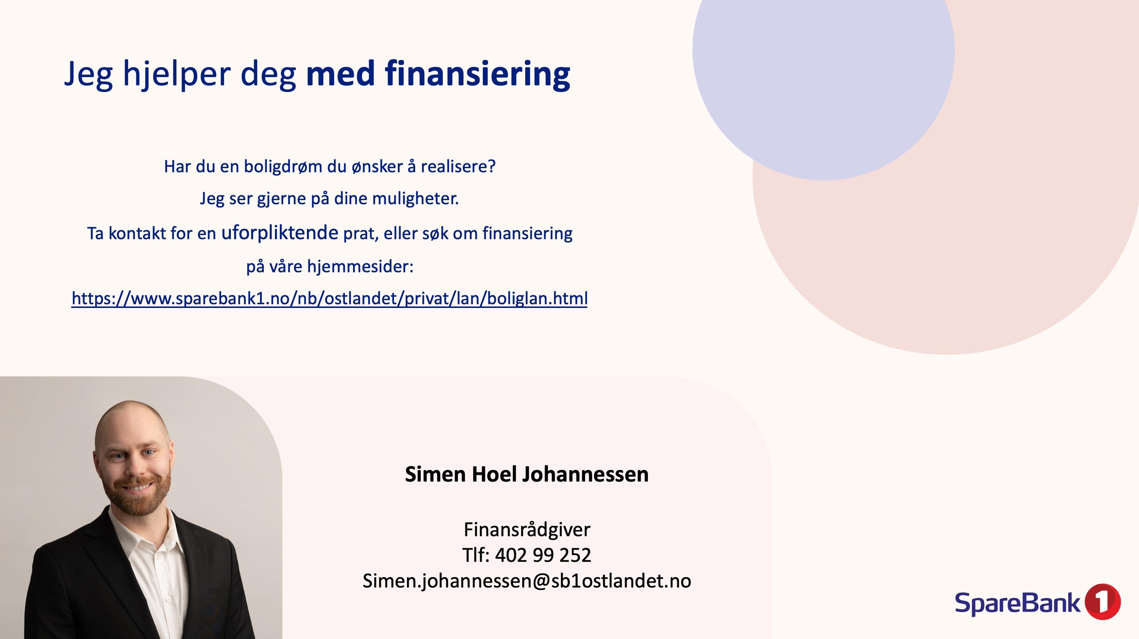 Simen Hoel Johannesen er en erfaren bankrådgiver som kan bistå med en vurdering av deres finansieringsbehov for å realisere boligdrømmen.