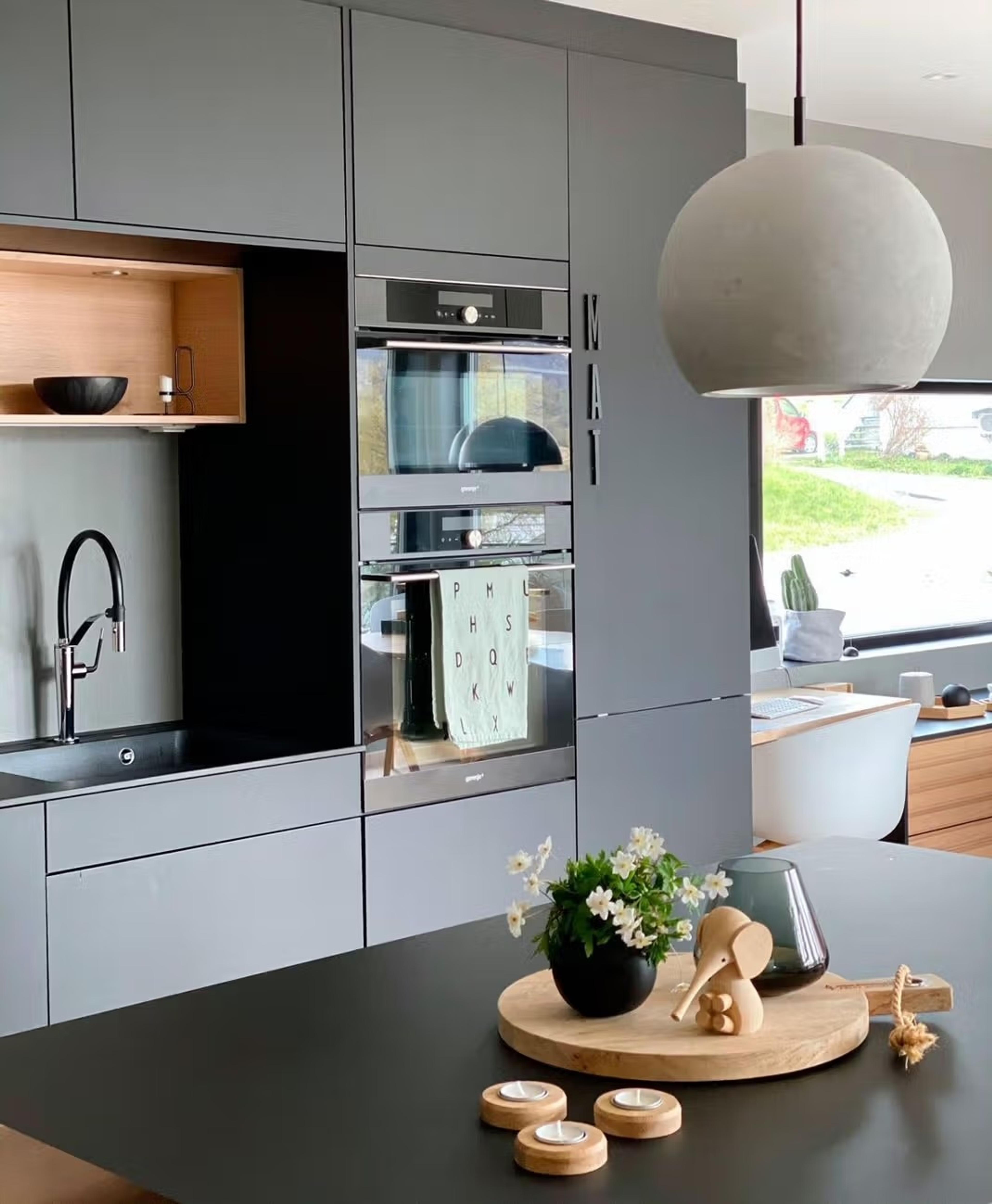 Vi er jo godt voksne mennesker som har lang fartstid i å bo, slik at vi har erfart mye som er viktig for at huset skal bli praktisk å leve i. Sånn sett hadde vi en stor fordel da vi planla dette huset. Så er vi genuint interesserte i hus og hjem, og har gjennom mange år brukt mye tid på alt fra oppussingsprogrammer på TV, lest og sett i interiørblader og boligkataloger, og studert andres boliger og boligannonser. Vi har naturligvis også brukt internett og apper som Pinterest og ikke minst Instagram som inspirasjonskilder.