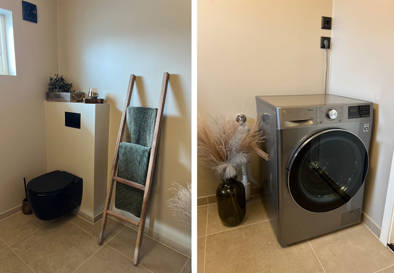 Her valgte kunden å gå for fliser på gulv og i dusj, med våtromsplater malt i samme fargetone på veggen.