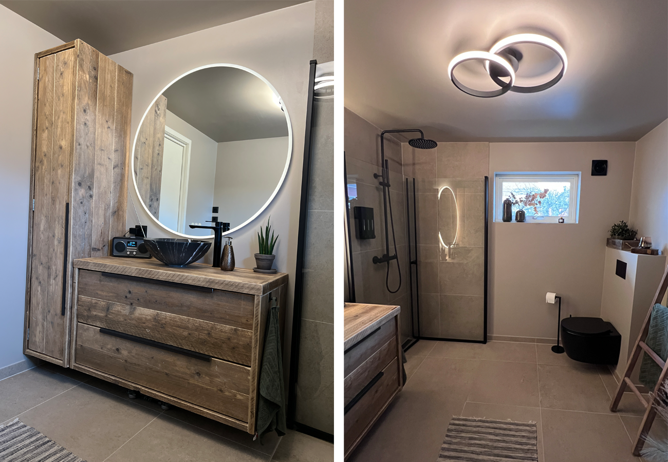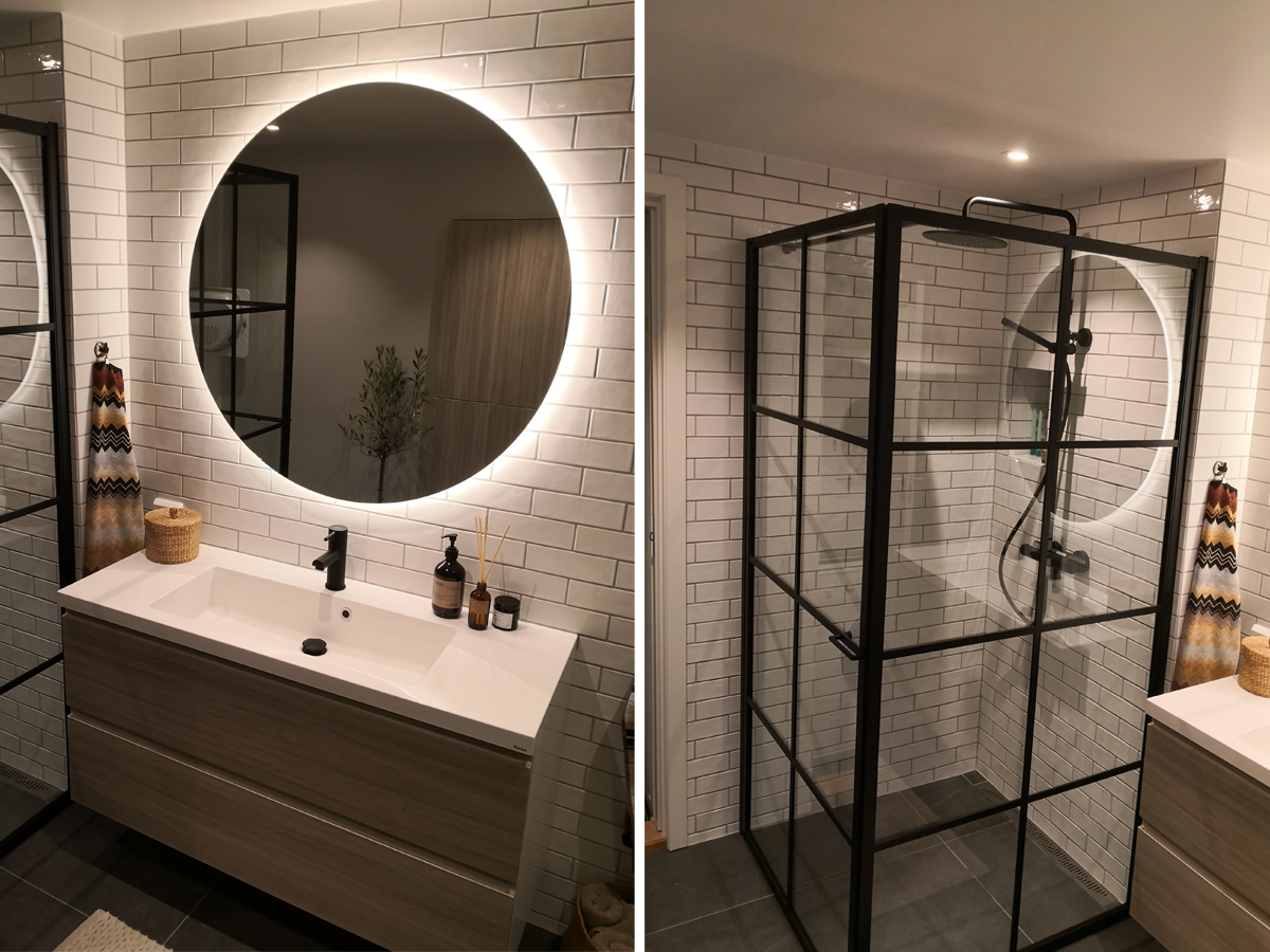 Vi ser også at mange velger mer unike løsninger på speil og baderomsinnredning. Å velge en annerledes form på speil og baderomsinnredning, som disse kundene gjorde, kan gi badet et unikt og moderne preg.