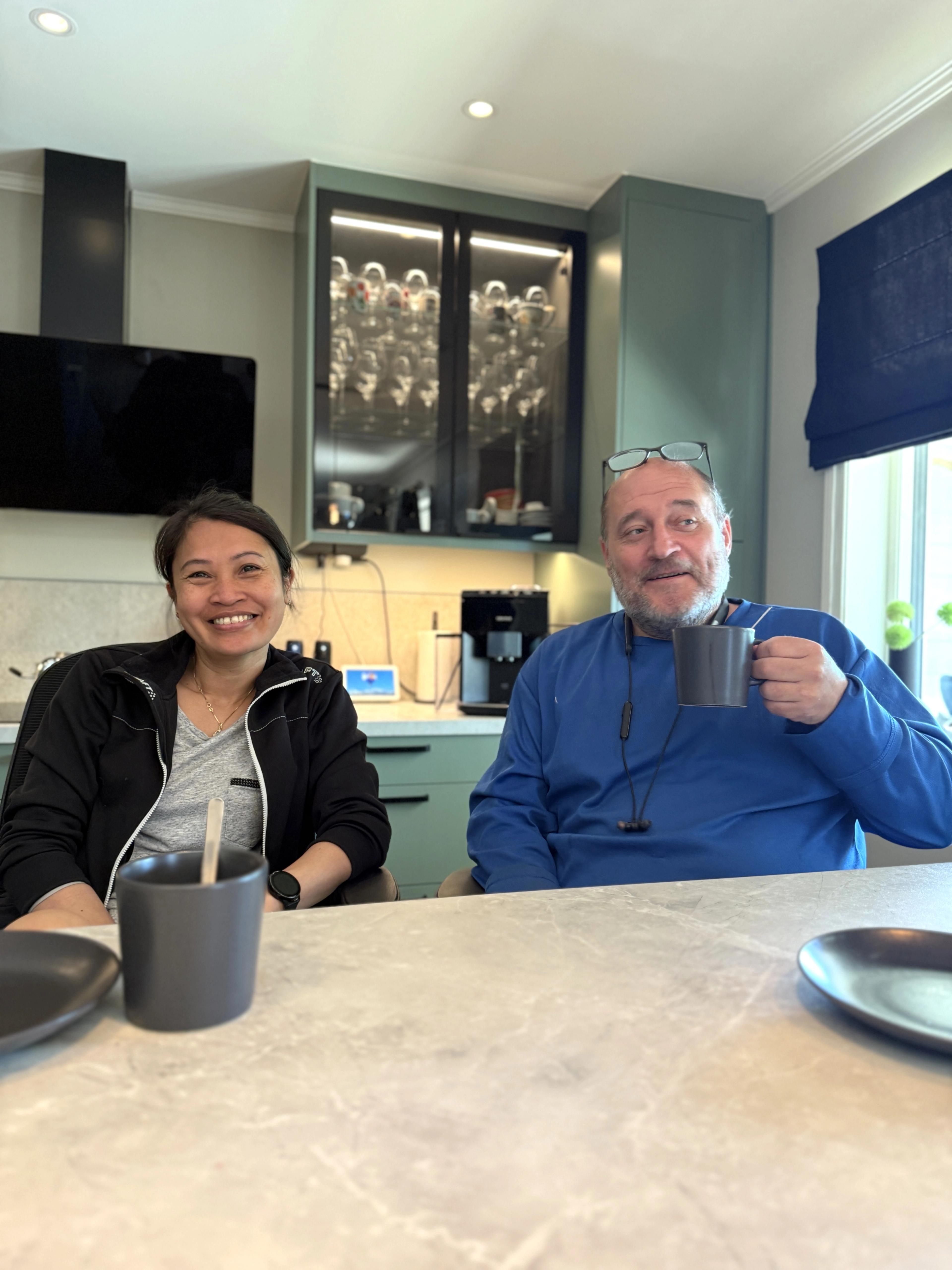 Richelle, Christian og Kari, stortrives i sine nye hjem. Her har de både hver sin private sone og muligheten til å være sammen når de ønsker det. Og lille Max, familiens hund, kan bevege seg fritt mellom terrassene og nyte livet han også.