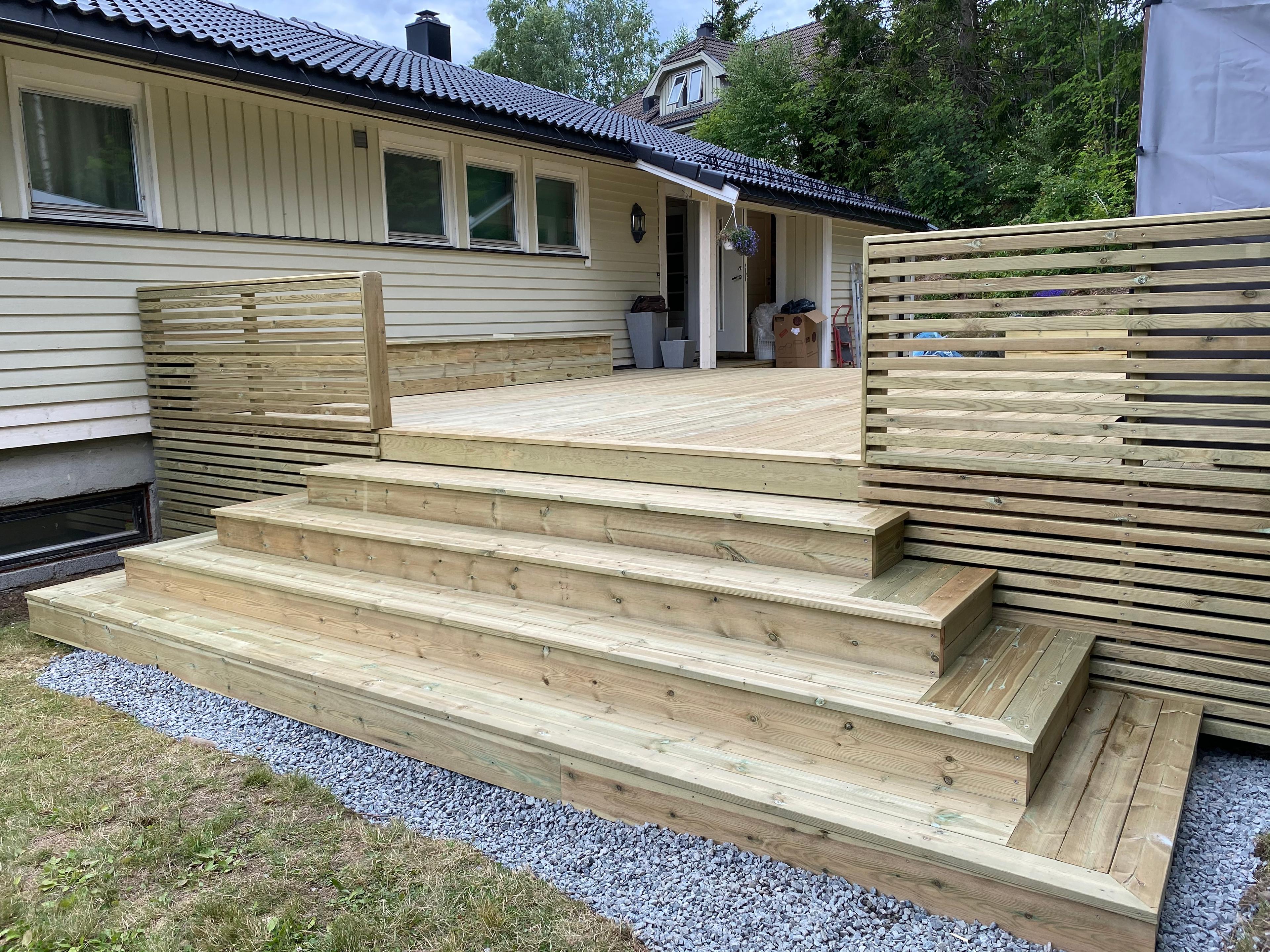 Har du en uteplass som trenger å fornyes, eller ønsker du å bygge noe helt nytt? Vi utfører og leverer etter dine ønsker, tilpasset boligen og terrenget.