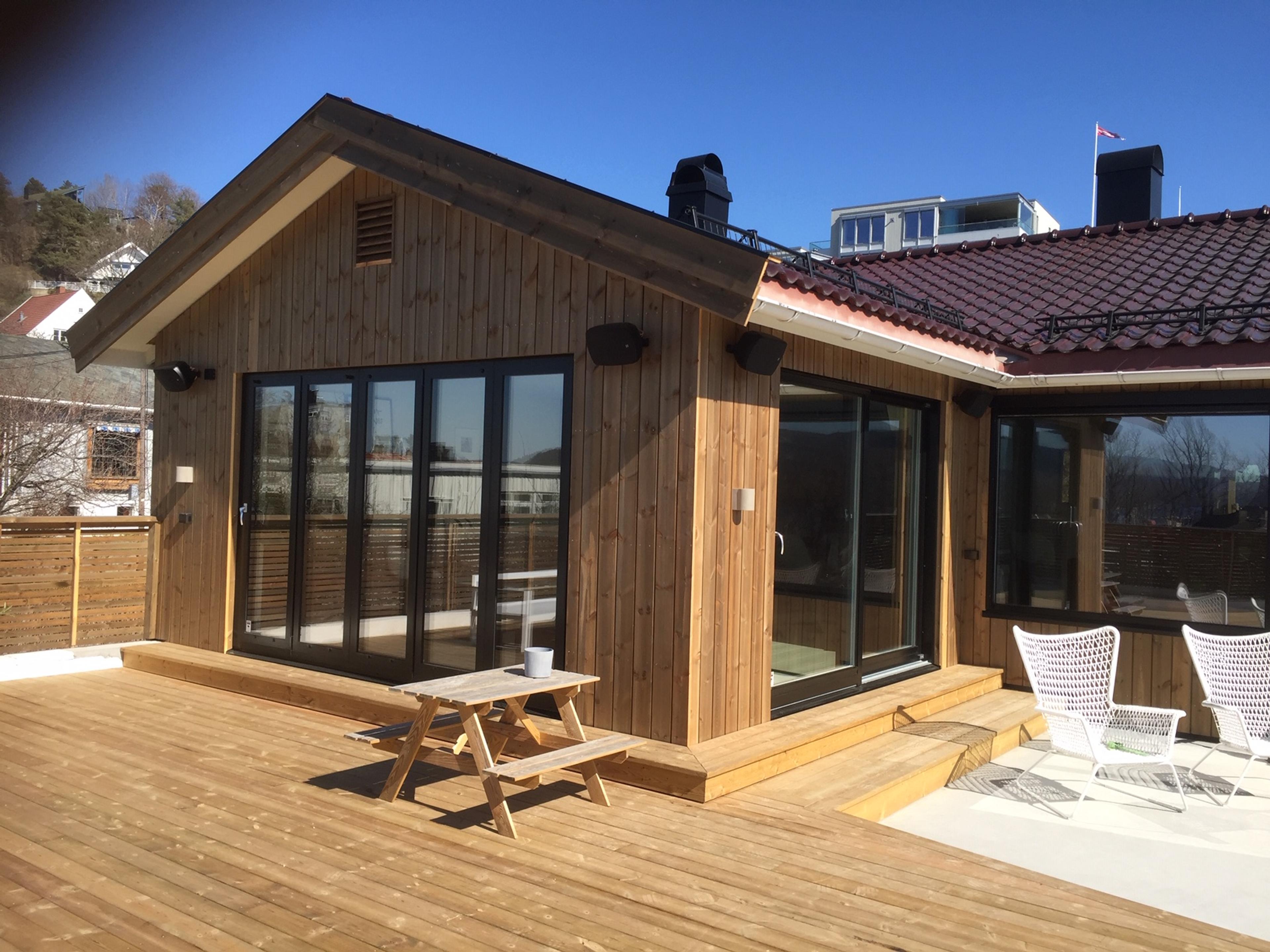 Ønsker du å utvide din nåværende bolig, kan vi hjelpe deg. Vi tilbyr arkitekttjeneste og hjelper deg i hele prosessen fra planlegging og byggesøknad, gjennom hele byggeperioden med våre ansatte byggeledere, til bygget står ferdig. Gjennom vårt tette samarbeid med underleverandører som bl.a rørlegger, elektriker, flislegger og maler sørger vi for at vi kan levere et komplett produkt med høy kvalitet til deg som kunde.