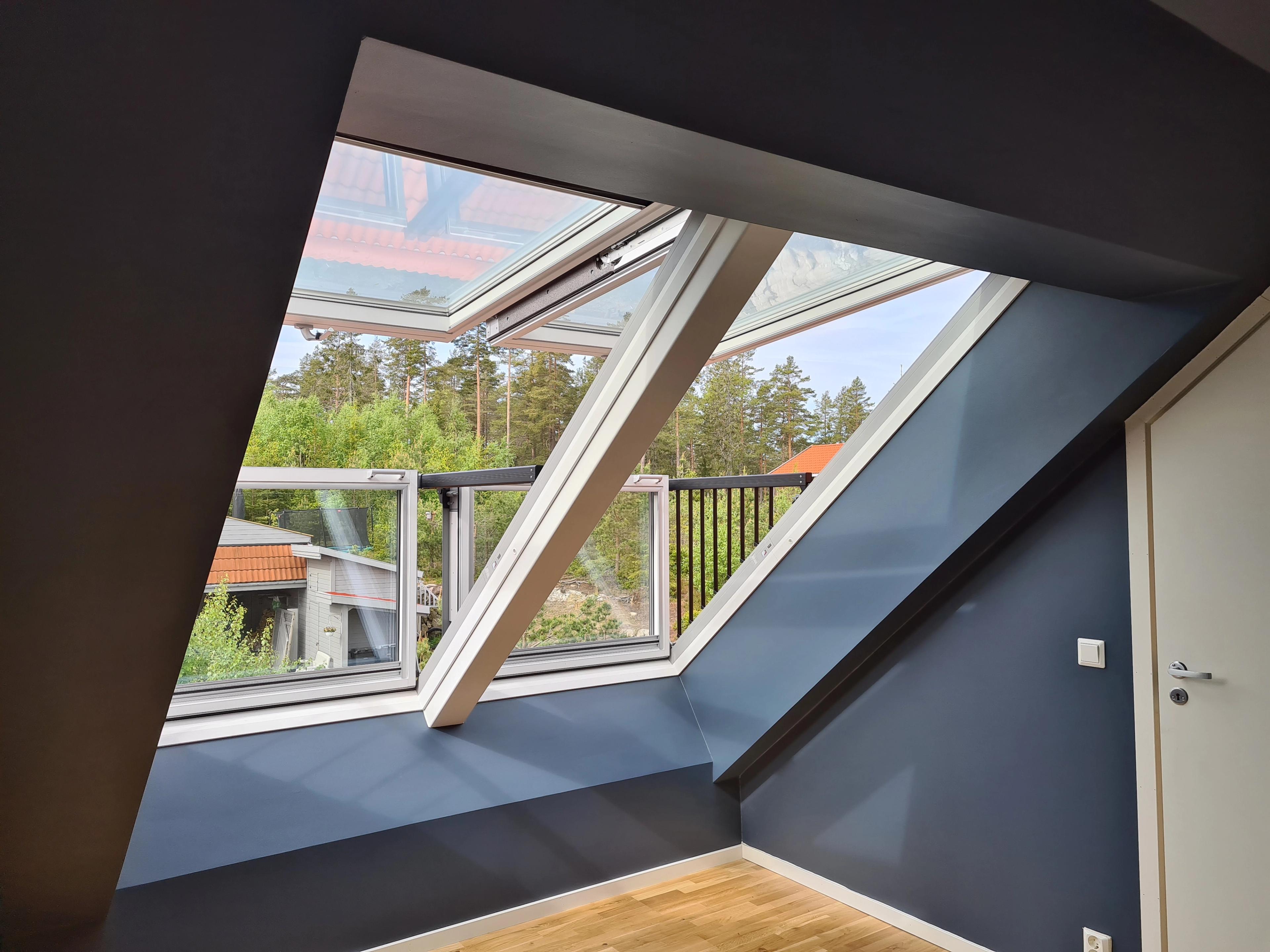 Vi har lang erfaring på Velux takvinduer. Her har vi montert Velux takaltan for bedre utnyttelse av loftstuen: