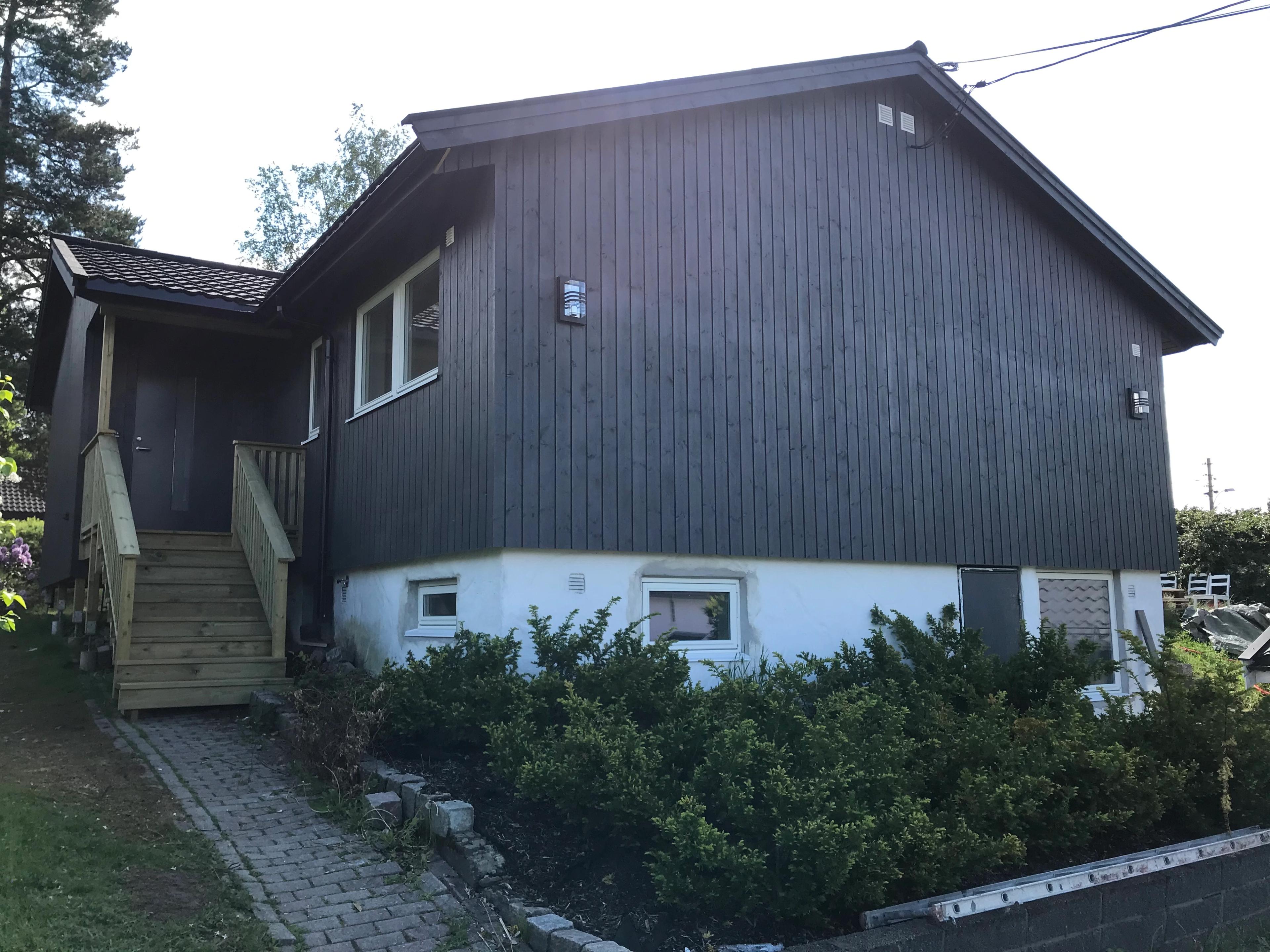 I tillegg til å totalrenovere denne boligen fra 70-tallet, bygget vi på et lite inngangsparti. Vi tok oss av tegnejobben og var ansvarlig søker mot kommunen.