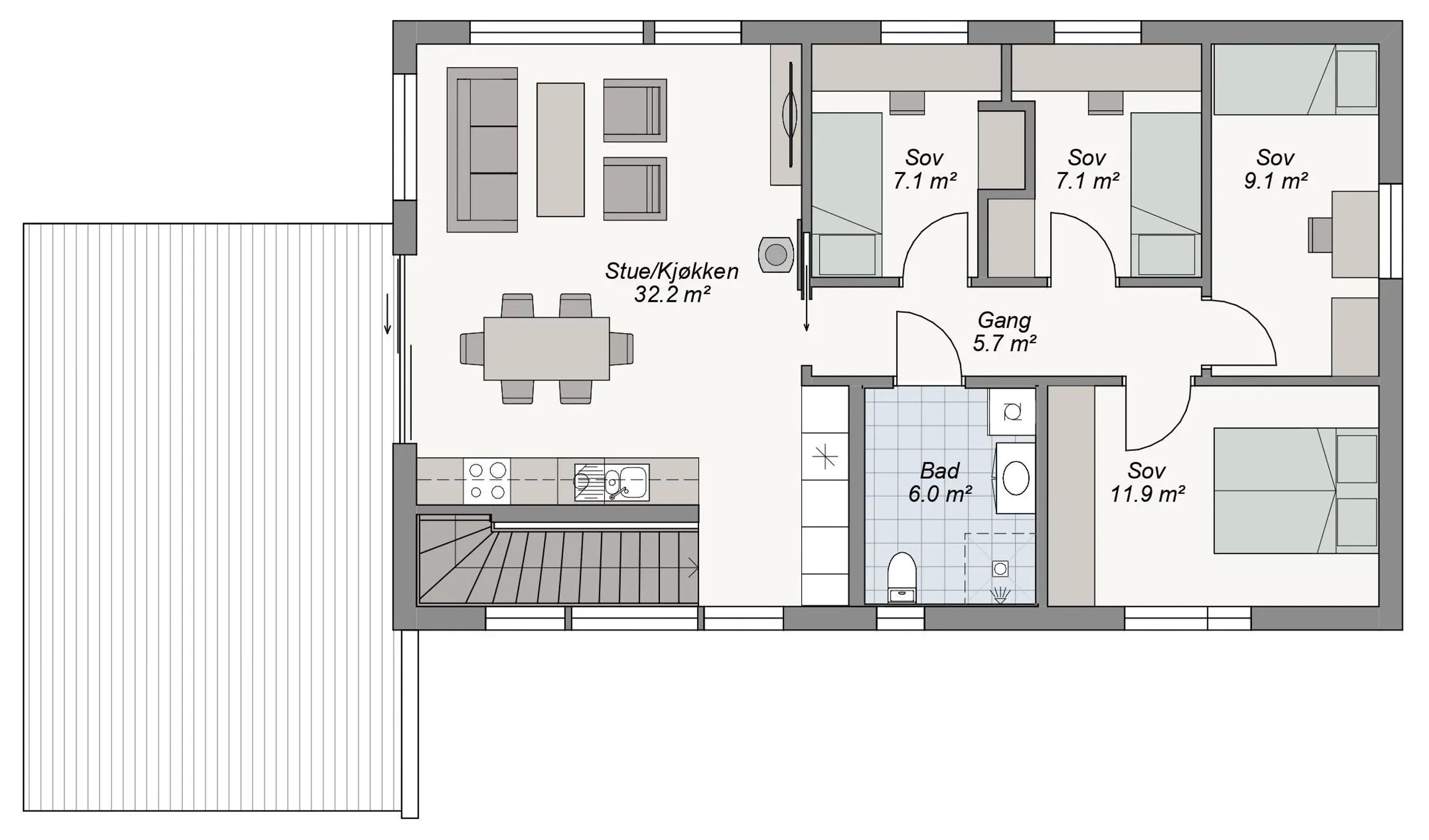 Alle våre modeller kan tilpasses dine behov, og både dimensjoner, rom og planløsning kan endres slik du vil ha det