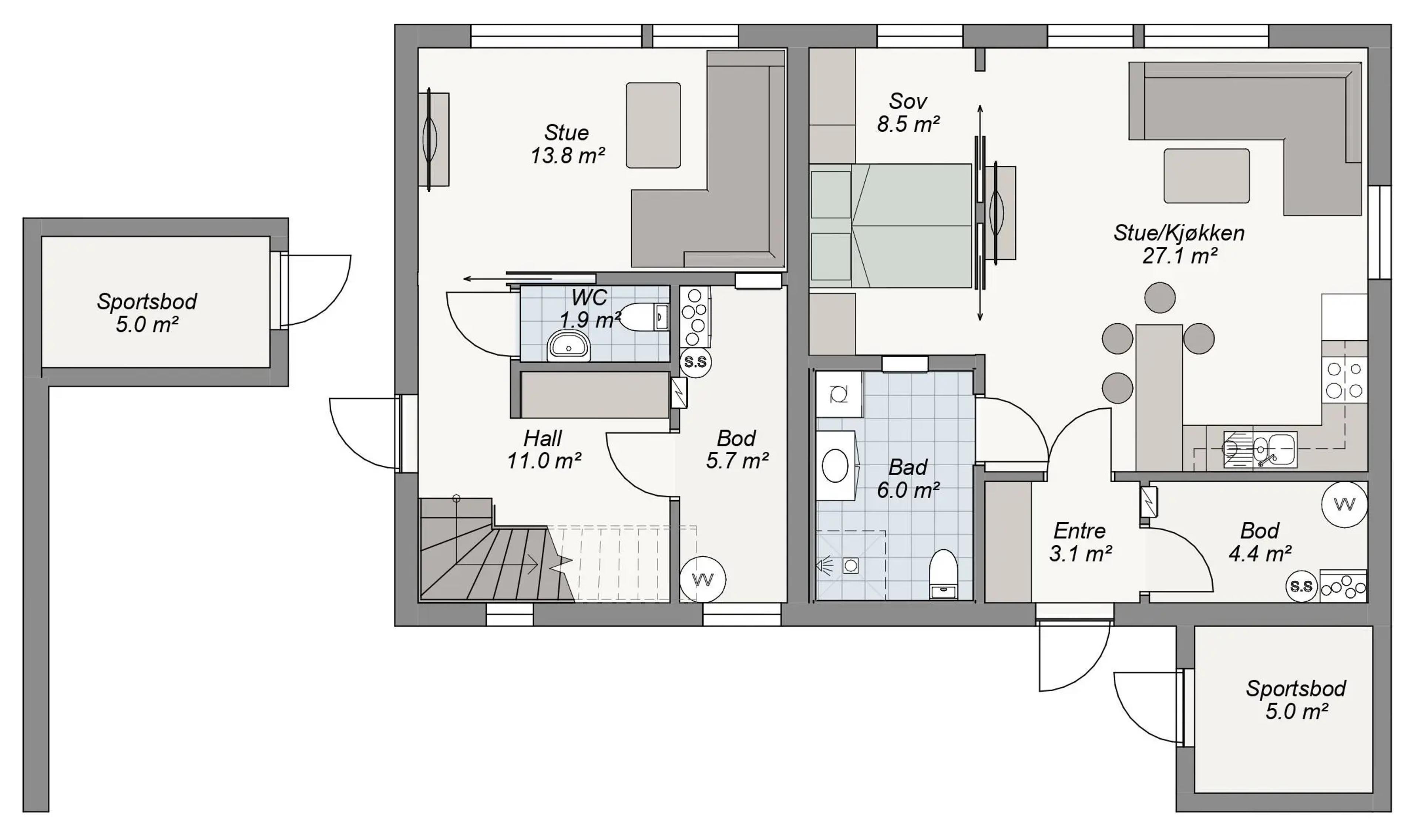 Man bruker mye tid i hjemmet, og i All-Tid boligprosjektet vet vi at det er viktig å skape et miljø der alle føler seg hjemme. Enten du søker etter ro og avslapning, eller ønsker et område for aktiviteter og underholdning, så tilbyr denne boligen den perfekte rammen for din livsstil. Med plass til alle og mer til, vil familien din trives i denne moderne eneboligen.