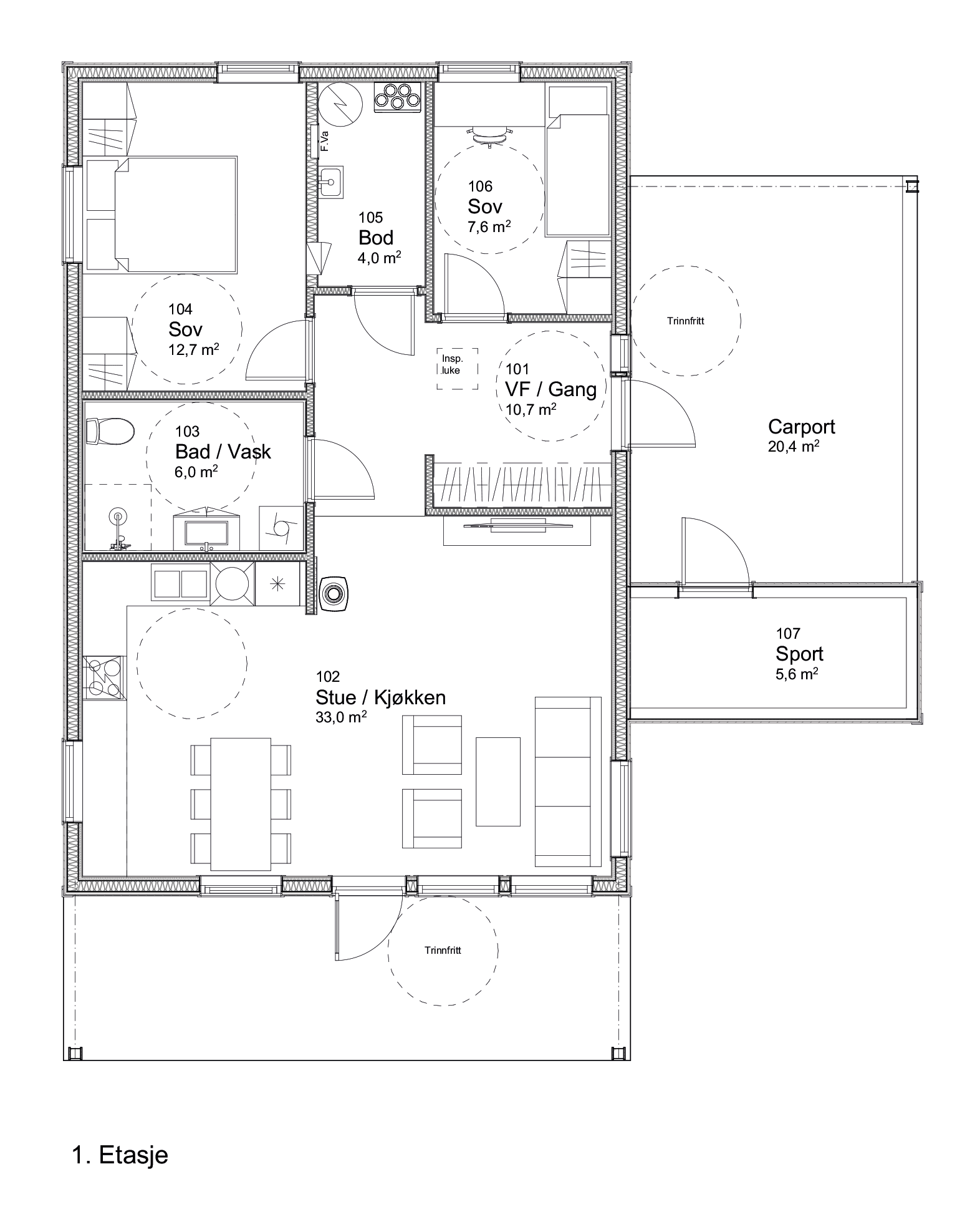 - Integrert carport, med sportsbod på ca. 5,6 kvm
