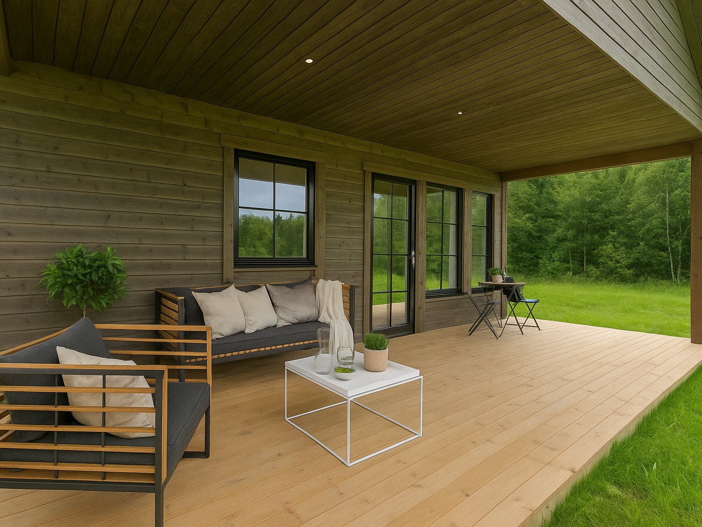 - Overbygd terrasse gjør at både møbler og folk sitter tørt selv om det er litt duskregn i lufta