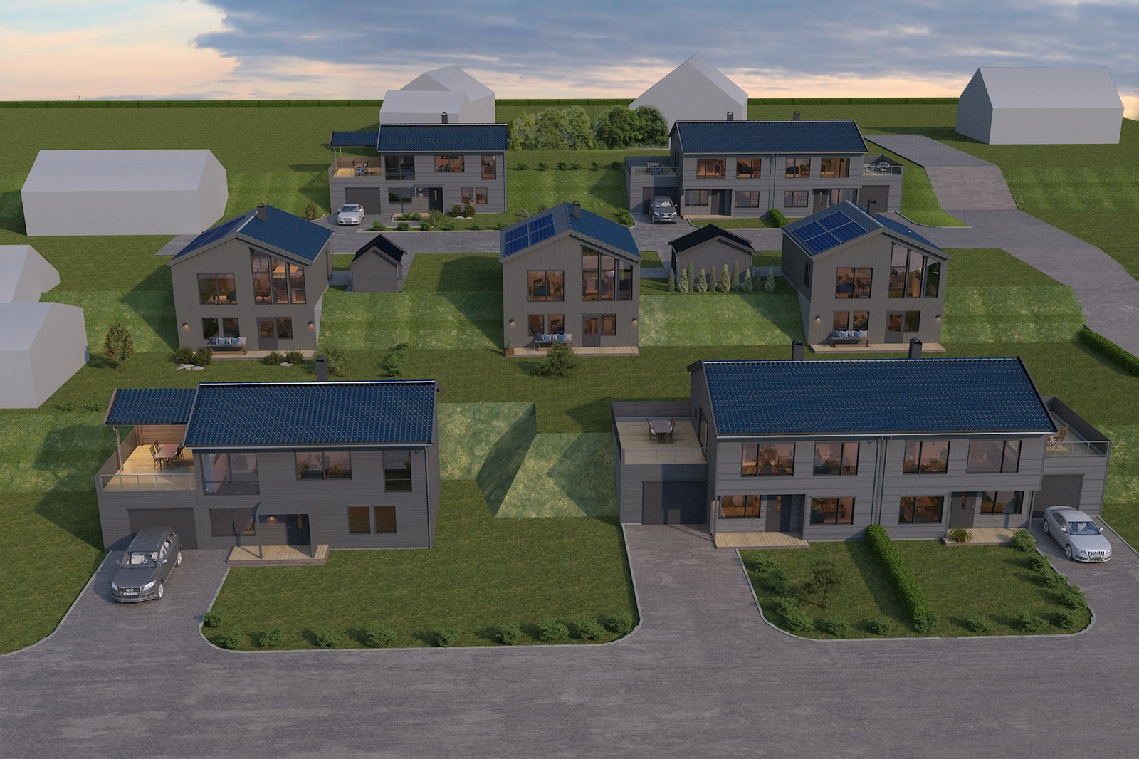 På dette solfylte boligområdet, hvor det skal bygges fem eneboliger og to tomannsboliger, er det hittil satt opp to eneboliger og en tomannsbolig. Vi ønsker nå å sette opp flere enheter. Hvis du er interessert i å bygge sentralt i Vikersund med kort avstand til skole, sentrum og fine turmuligheter kan dette være noe for deg.