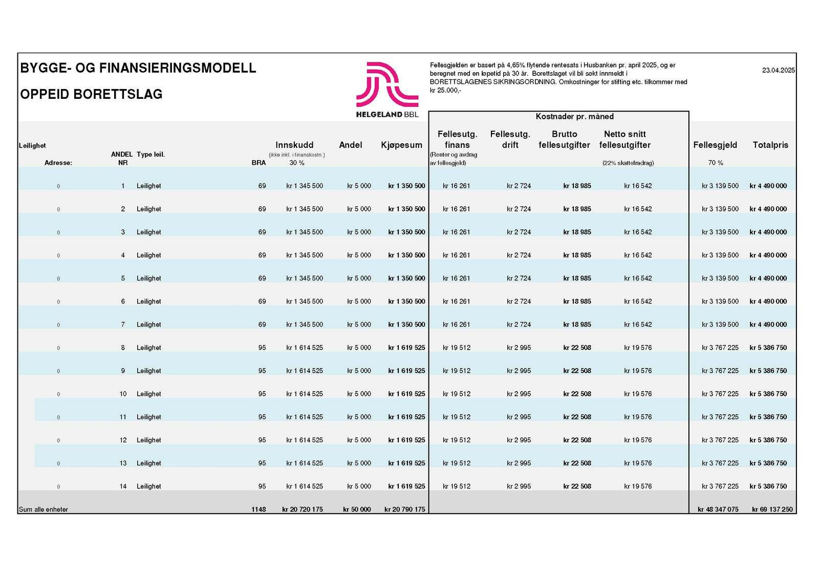 - Boligtype 1: BRA 69,2 m², 2 soverom