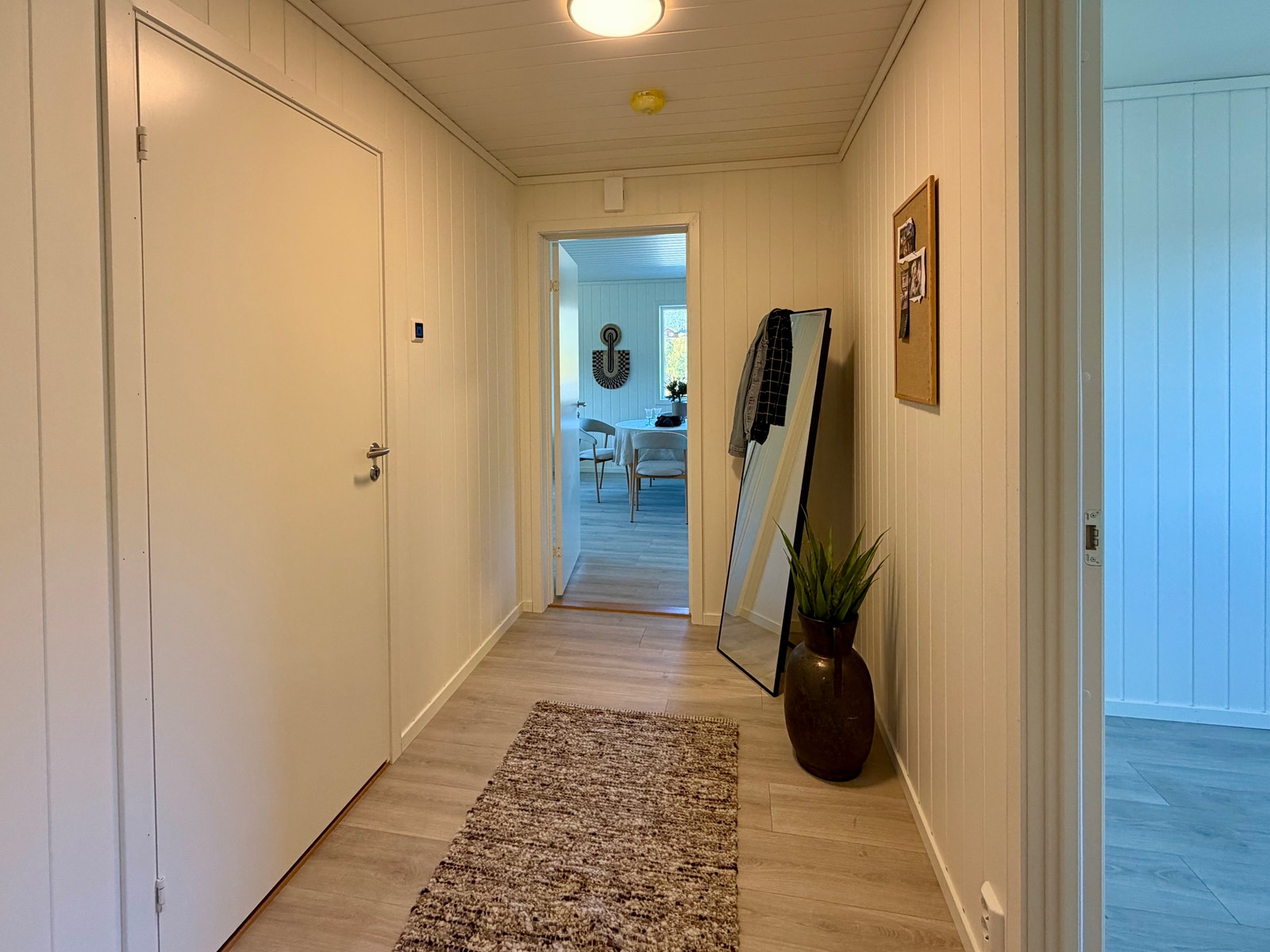 Stue, kjøkken, 2 soverom, bad/vaskerom, gang, innvendig bod.