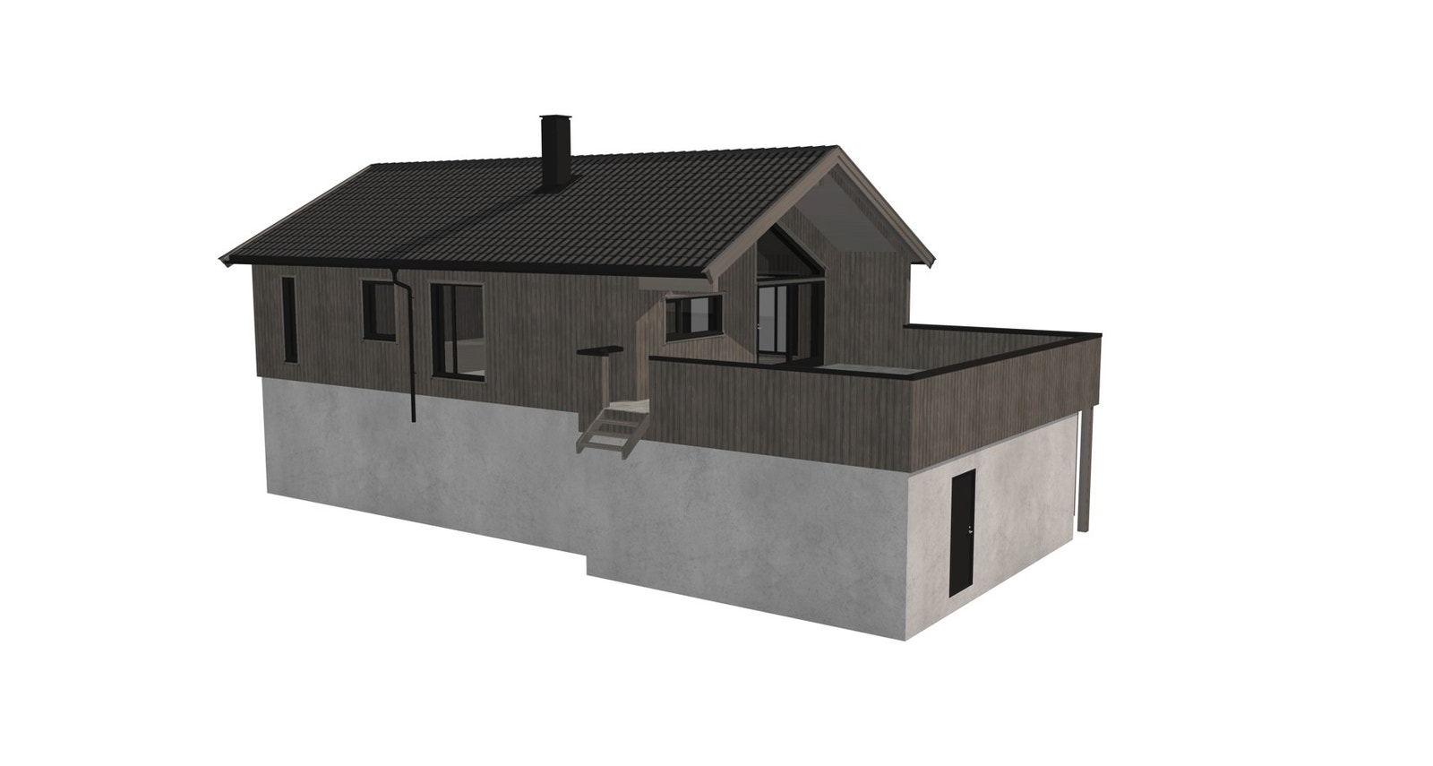 Her har vi prosjektert en enebolig med utleiedel og romslig dobbelgarasje.