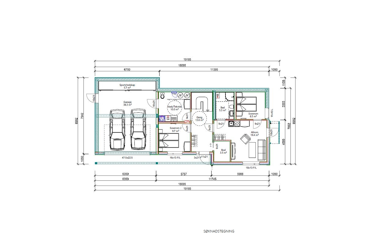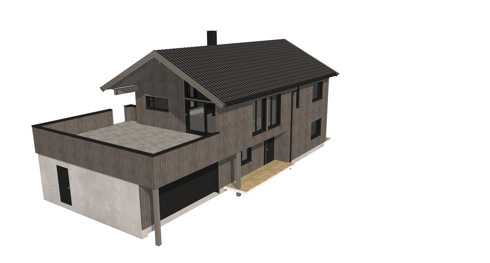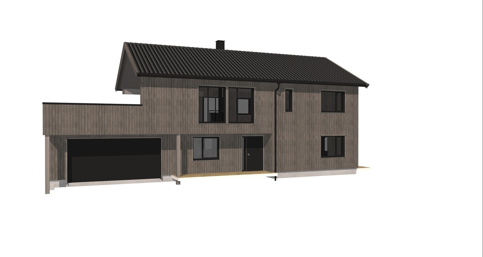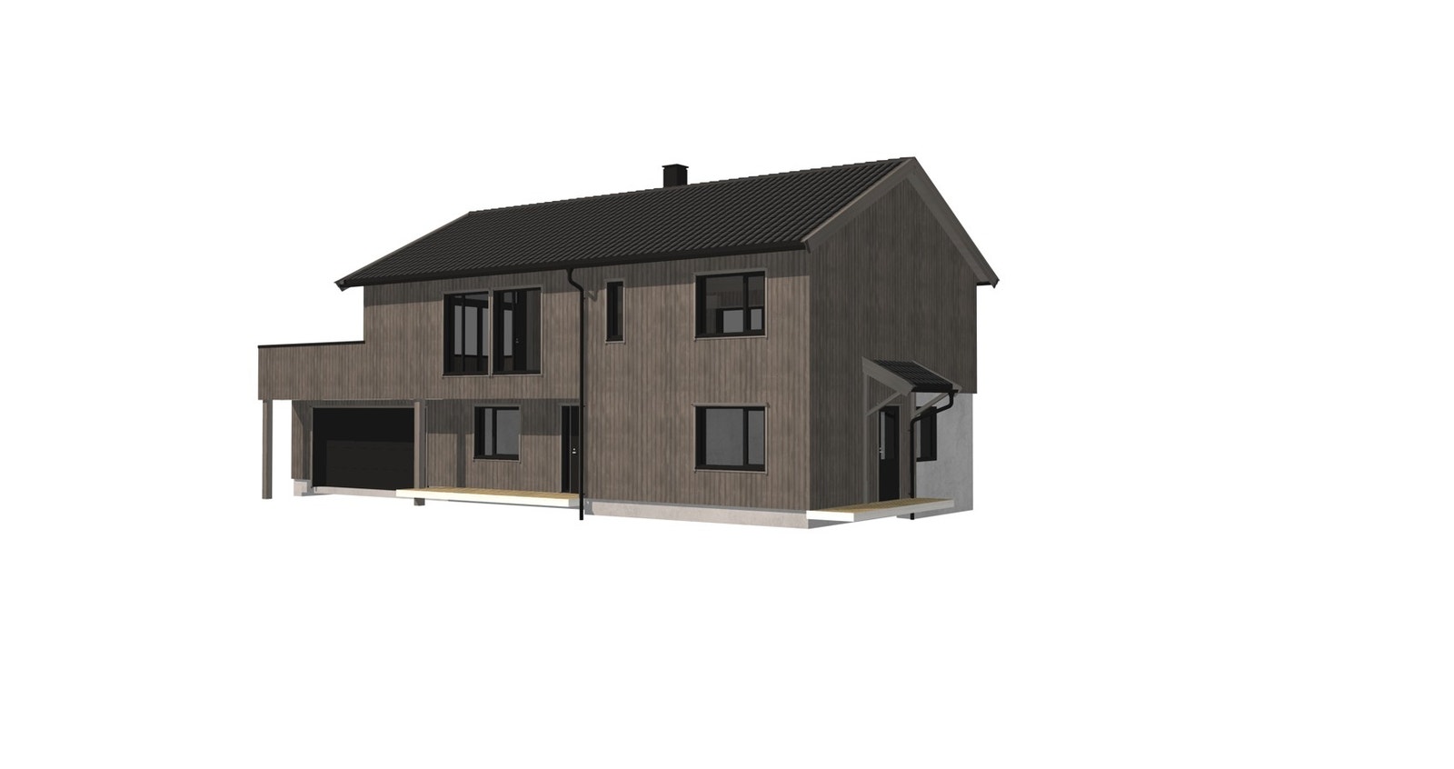 Her har vi prosjektert en enebolig med utleiedel og romslig dobbelgarasje.