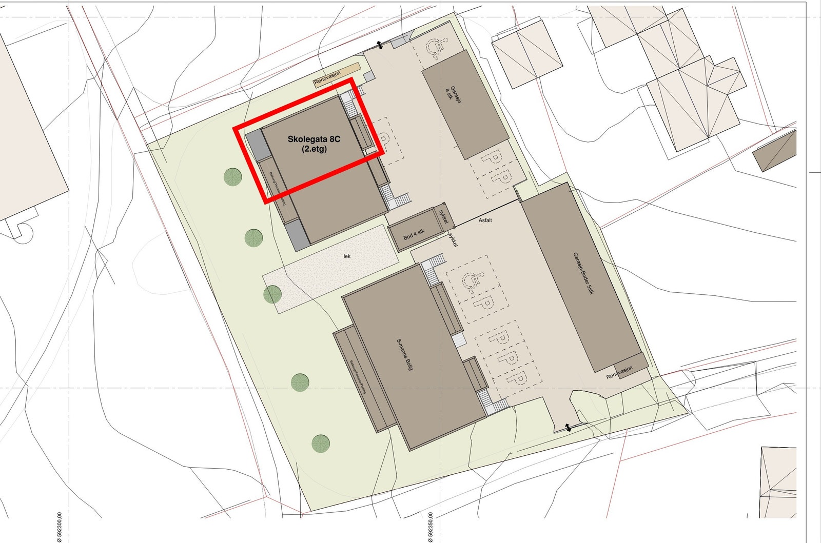 Dette er leiligheten lengst til venstre (mot vest) i 2.etg i byggetrinn 2.