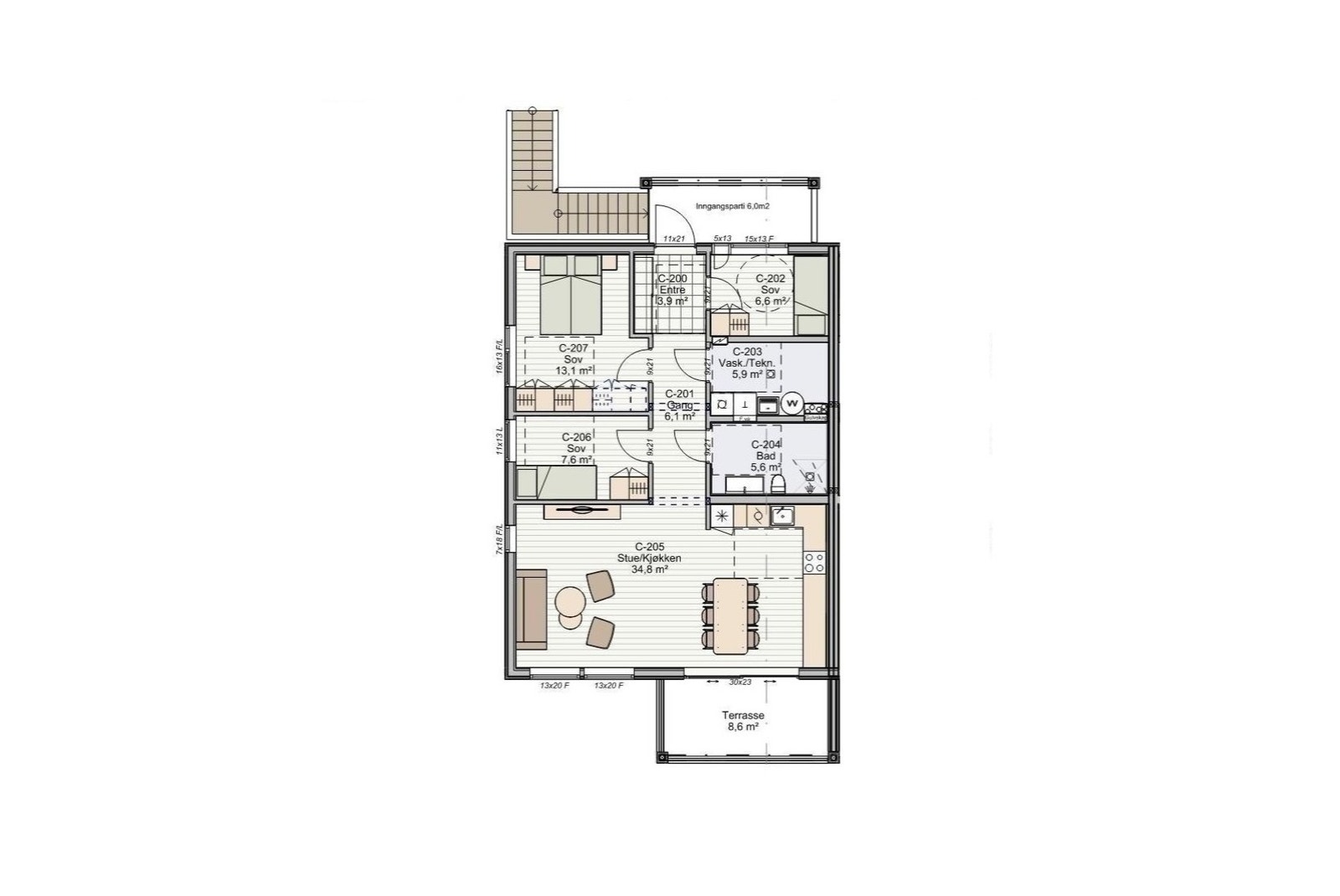 Dette er leiligheten lengst til venstre (mot vest) i 2.etg i byggetrinn 2.