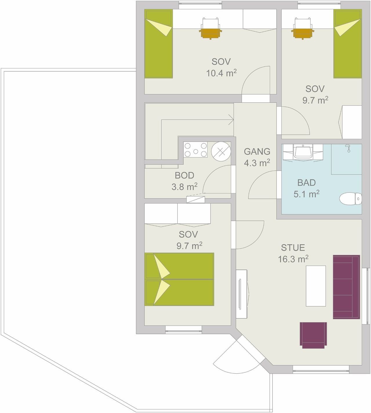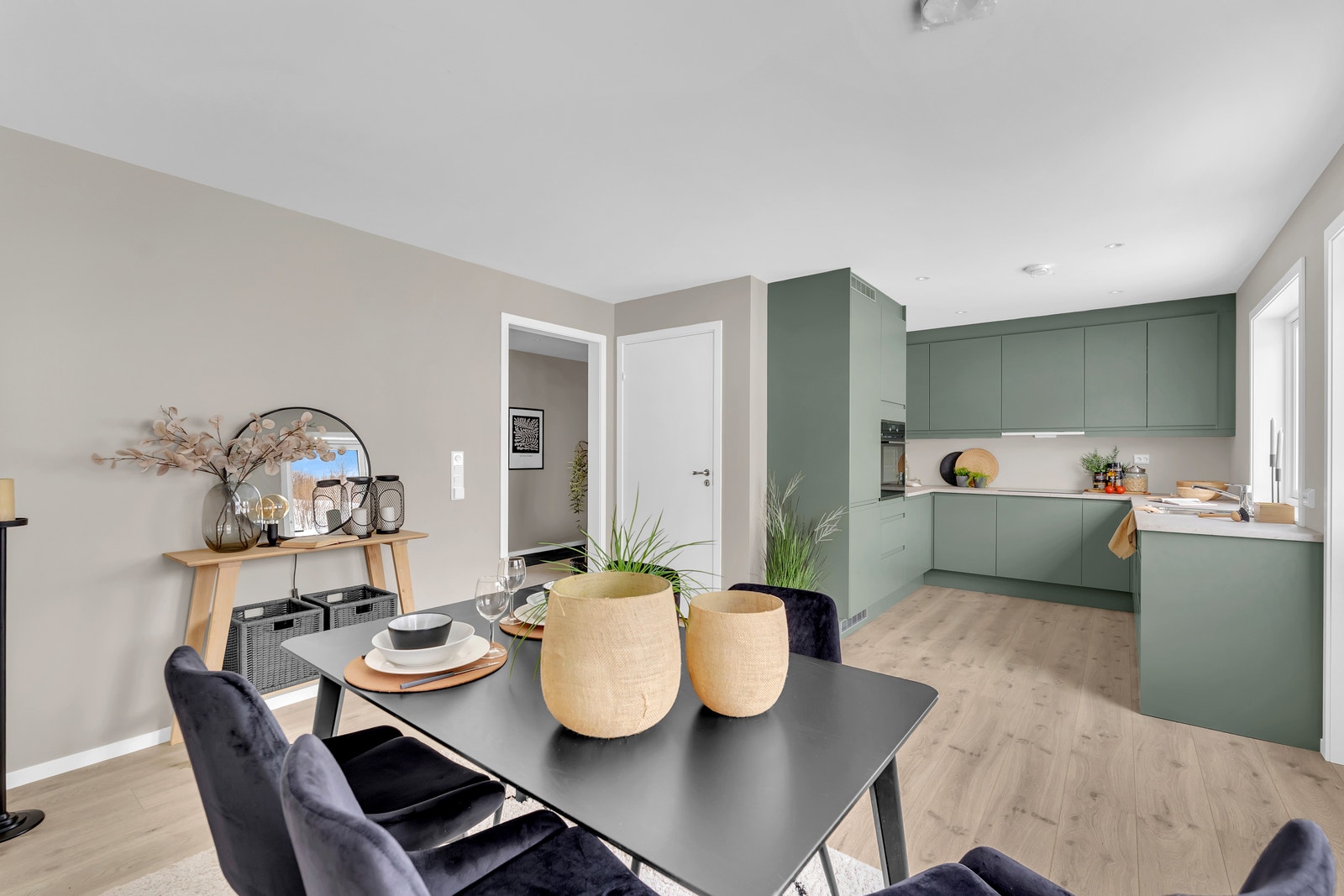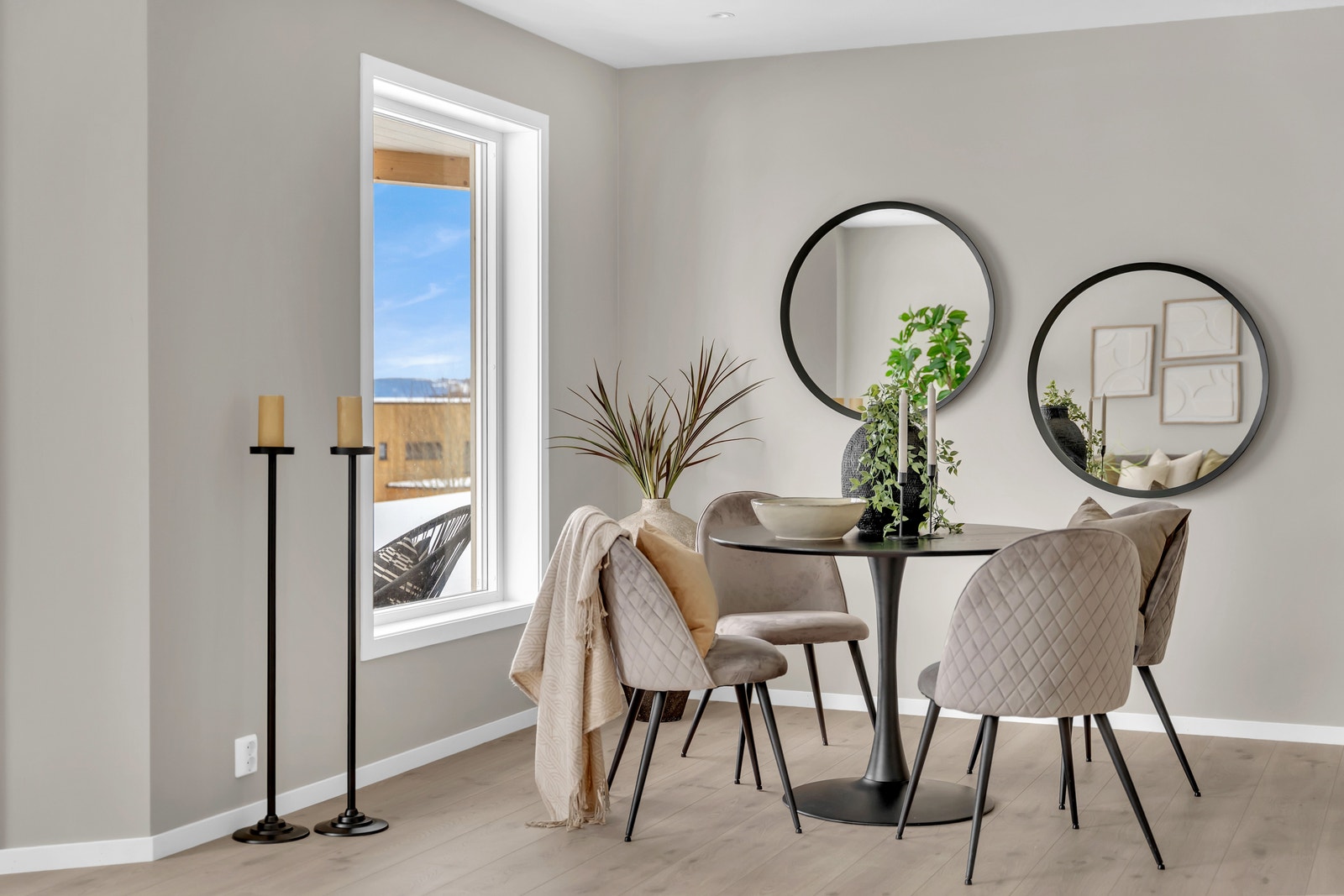 Boligen er ferdigstilt utvendig, men innvendig kan du fortsatt sette ditt eget personlige preg på flere av løsningene.