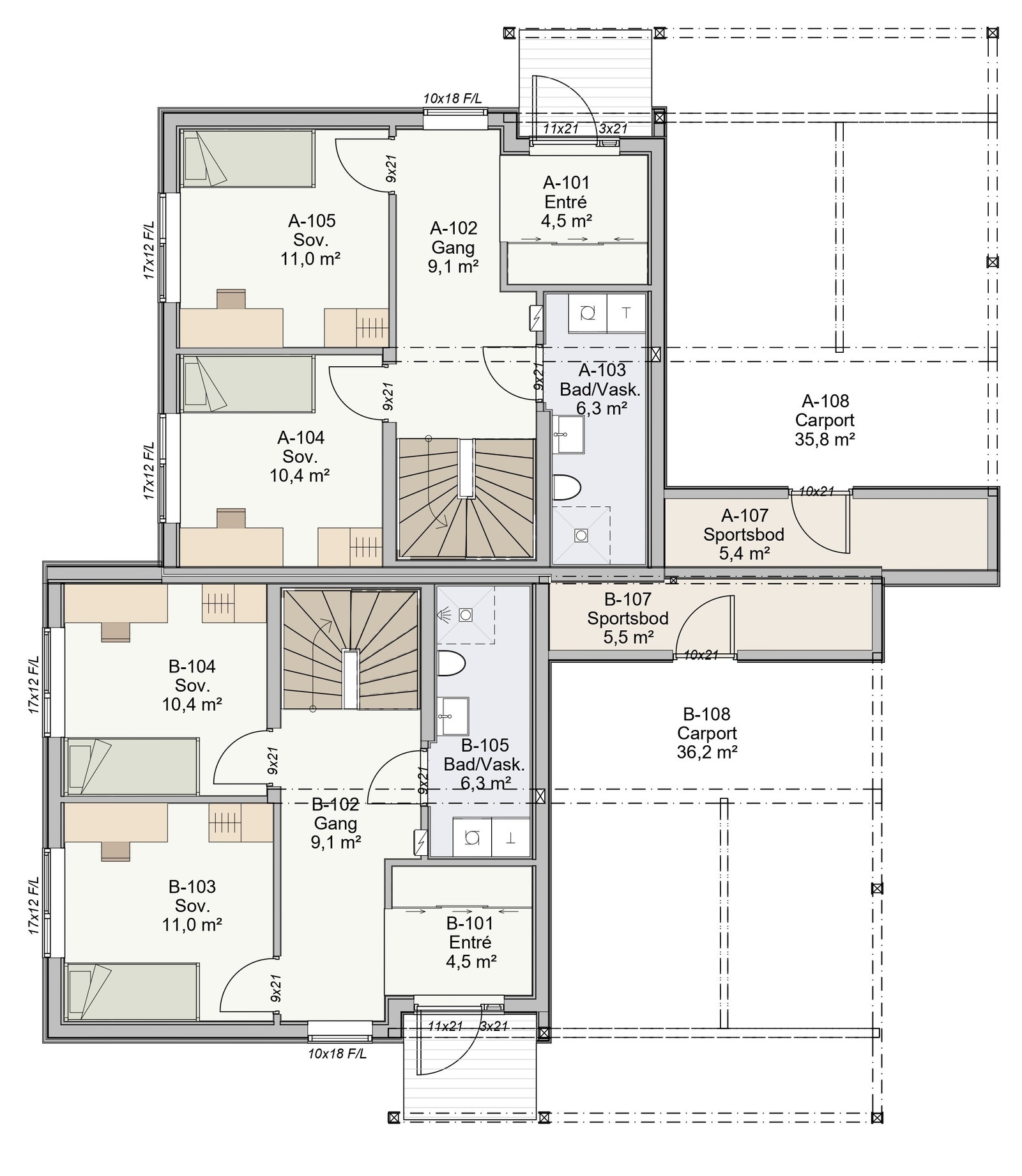 I dette prosjektet kan du også velge mellom to varianter av våre flotte tomannsboliger – begge med høy bokvalitet, god arealutnyttelse og rom for livets mange faser. Med inntil 4 soverom, 2-3 fullverdige bad og store oppholdsrom, får du et hjem som både er funksjonelt, moderne og tilrettelagt for familieliv.
