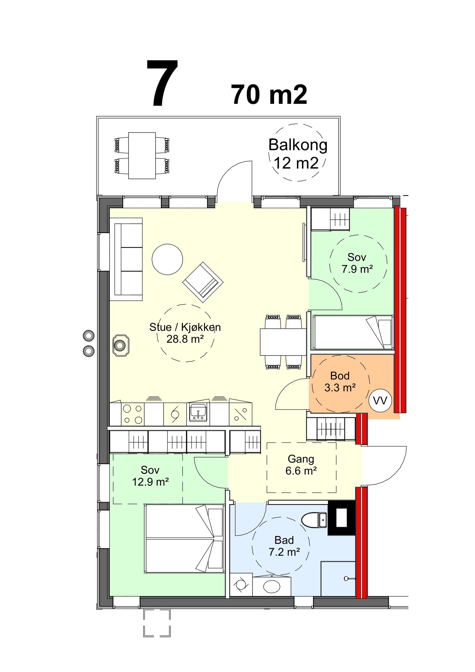 Leiligheten har god planløsning med to soverom. Åpen kjøkkenløsning og store vinduer bringer lyset inn. Stort hovedsoverom gir rom for god garderobeplass. Fra stuen kan du gå direkte ut på balkong og nyte kaffen i sola. Det er innvendig heis i bygget.