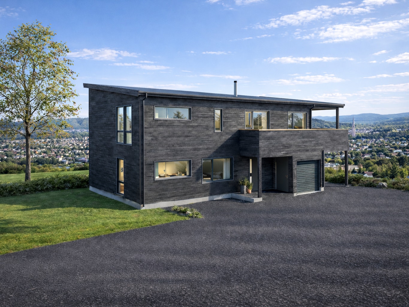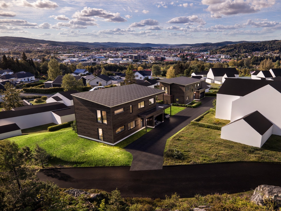 Moderne enebolig med garasje og carport bygges sentralt i Kongsberg