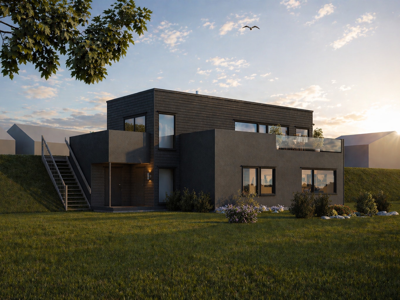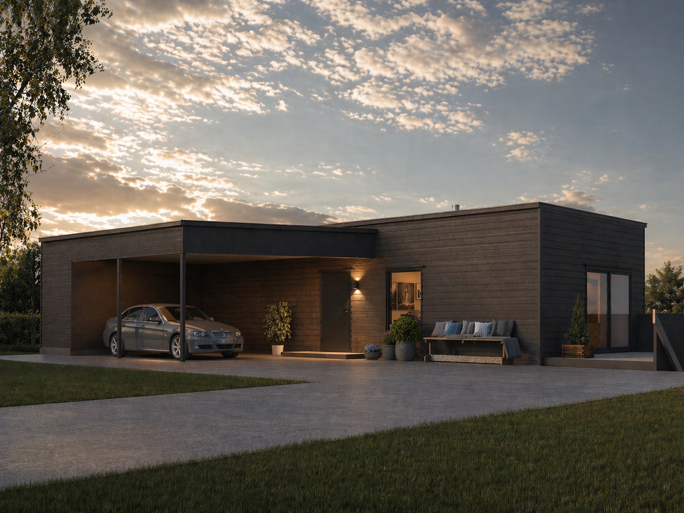 Moderne enebolig med carport bygges på nyetablert boligområde i Kongsberg