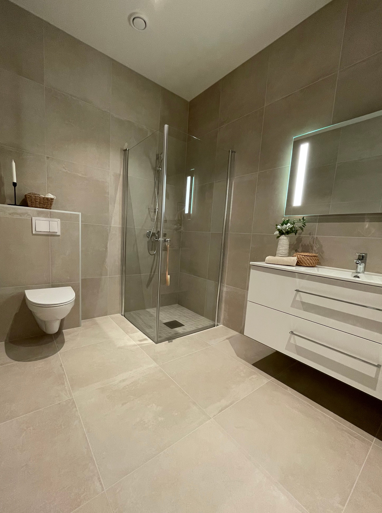- Fliser på gulv og vegg på bad