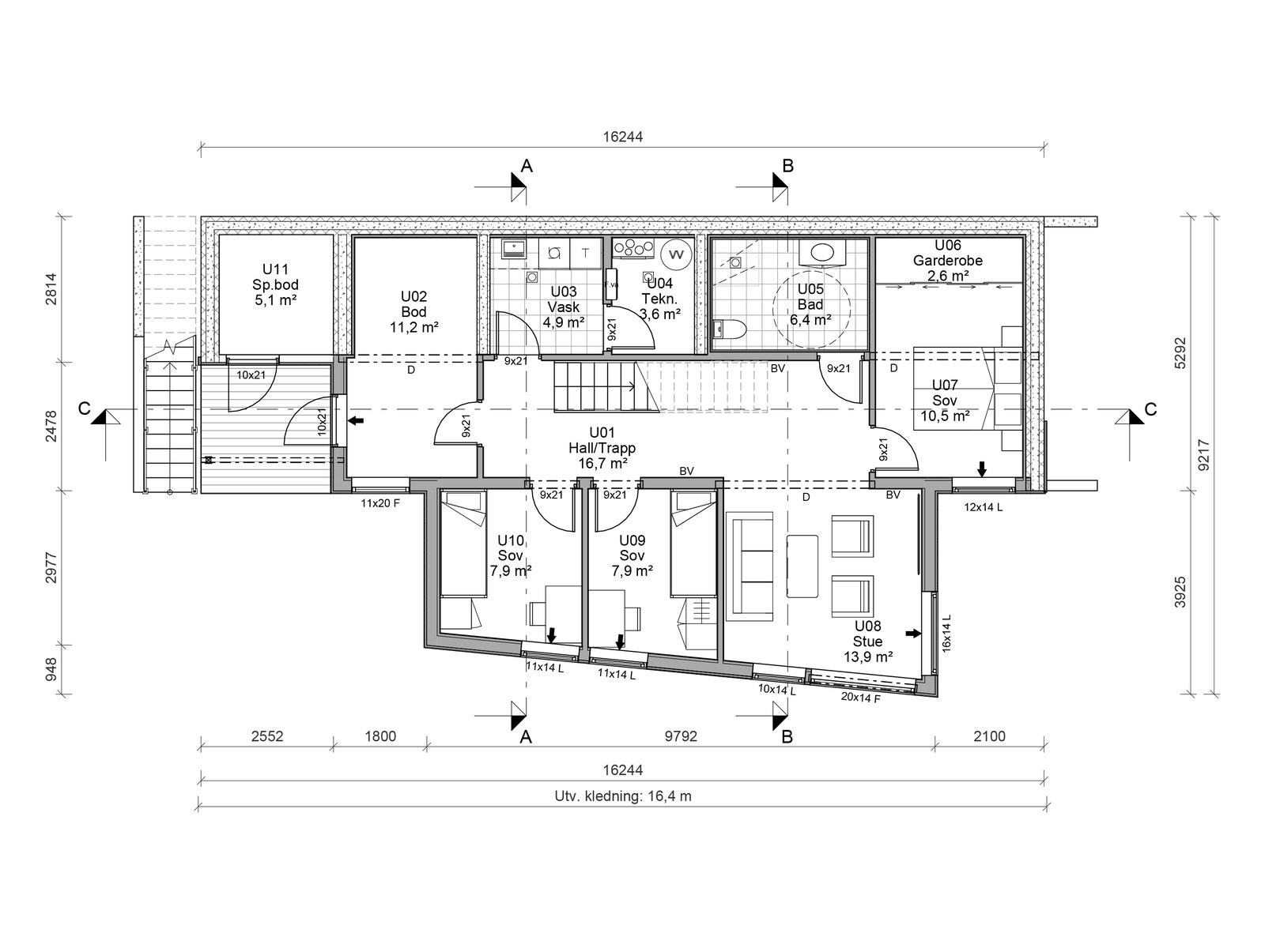 I underetasjen finner du også stue, bad, vask, teknisk og en stor bod med muligheter til oppbevaring – eller kanskje ønsker du å gjøre om boden til et treningsrom?