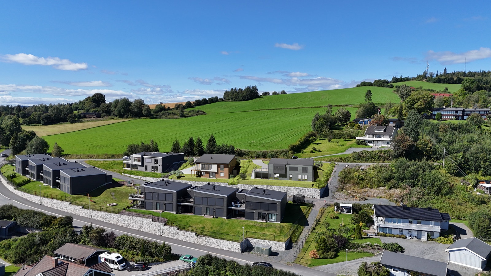 Du tar av fra Panoramavegen og inn i Berg Terrasse.